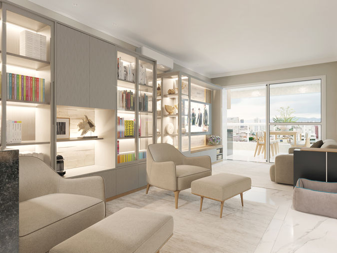 Esse projeto foi desenvolvido pensando no mínimo possível de tempo de obra. Toda a intervenção foi planejada para atuar 90% em marcenaria e iluminação na marcenaria.